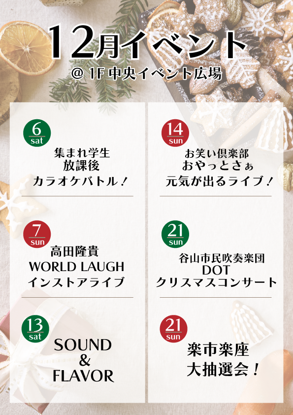 ※イベントは予告なく変更・中止になる場合がございます。予めご了承ください。