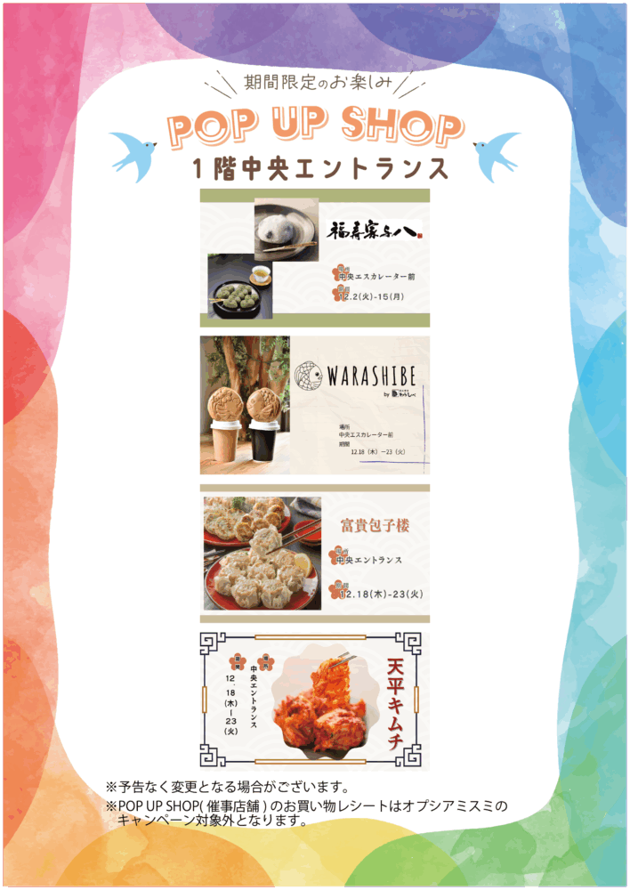 ※POP UP SHOP(催事店舗)のお買い物レシートはオプシアミスミのキャンペーン対象外となります。