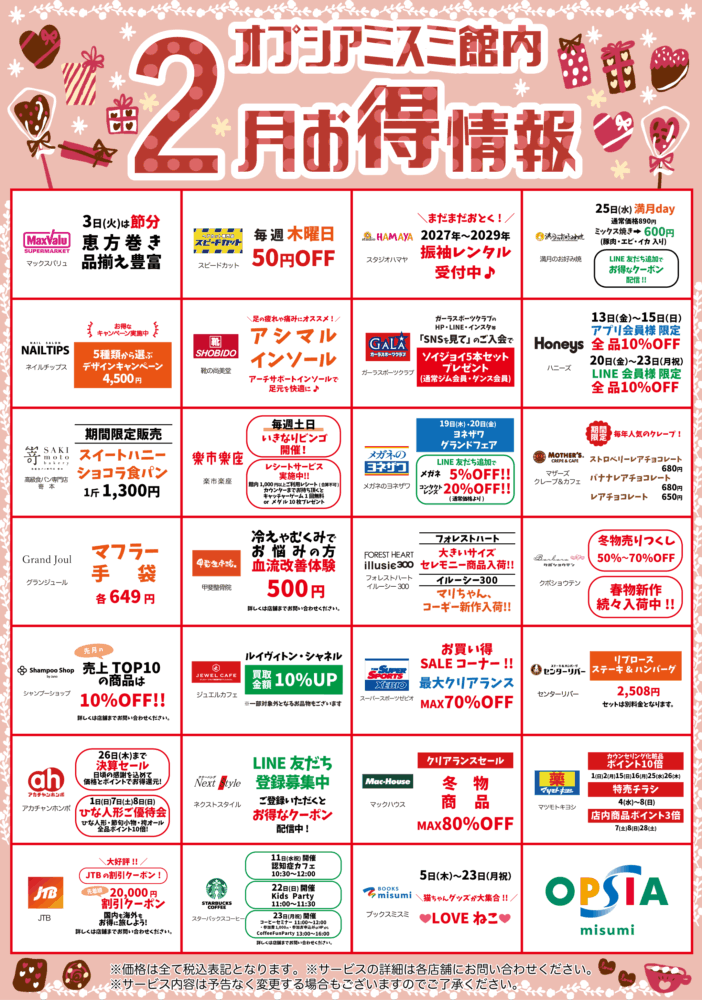 オプシアミスミ館内2月お得情報