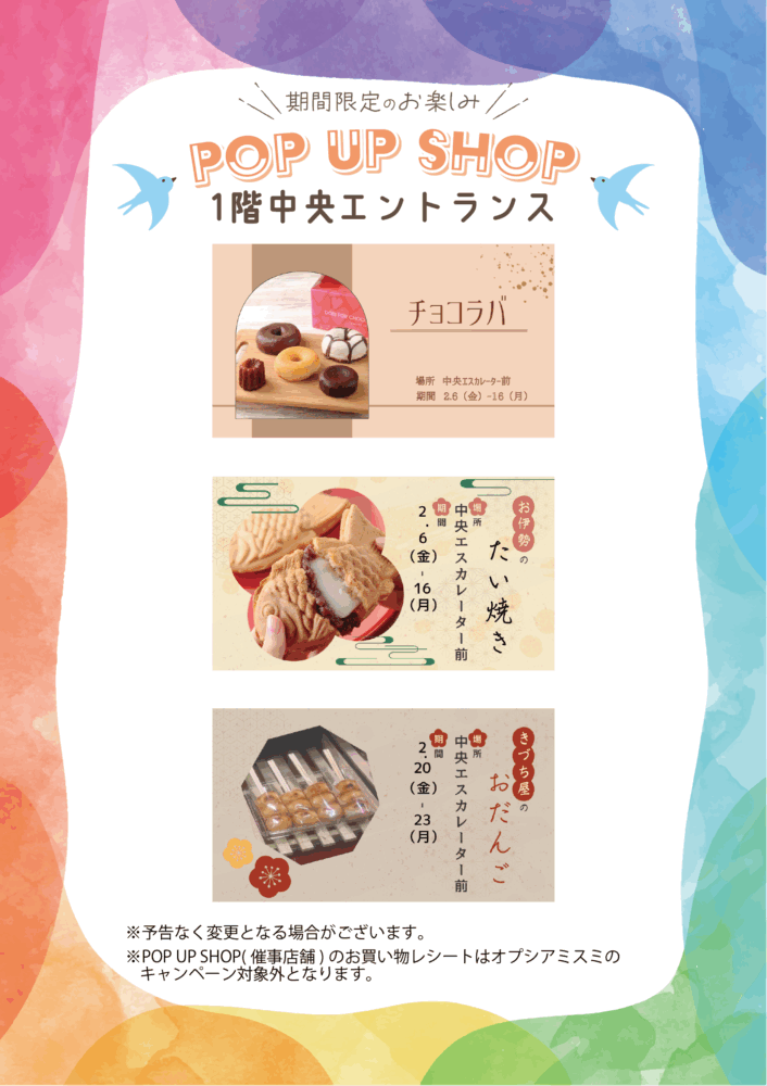 ※POP UP SHOP(催事店舗)のお買い物レシートはオプシアミスミのキャンペーン対象外となります。