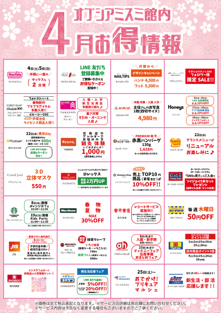 オプシアミスミ館内4月お得情報