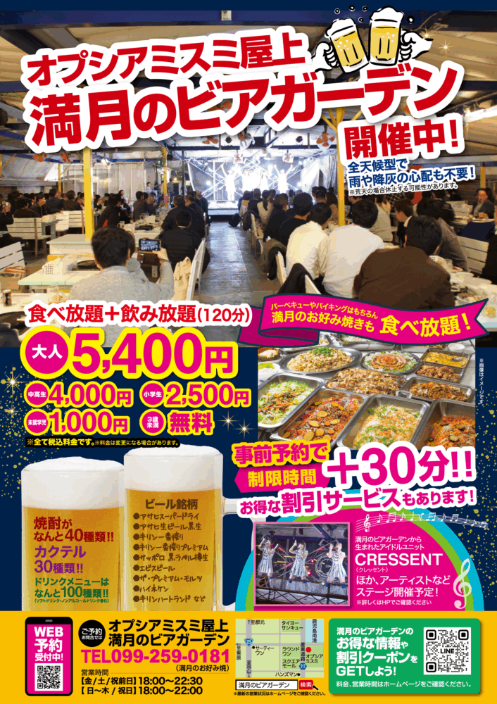 お問い合わせ:満月のお好み焼オプシアミスミ店 099-259-0181