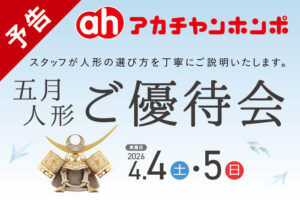 4月4日(土)・5日(日)は、五月人形ご優待会! 五月人形、鯉のぼり、節句小物・袴オールが全品ポイント10倍! スタッフが人形の選び方を丁寧にご説明いたします。