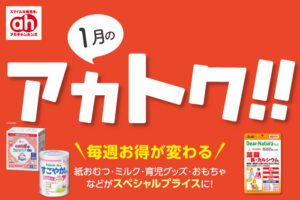 紙おむつ・粉ミルク・おもちゃ・育児雑貨など、週替わりでお買得!
