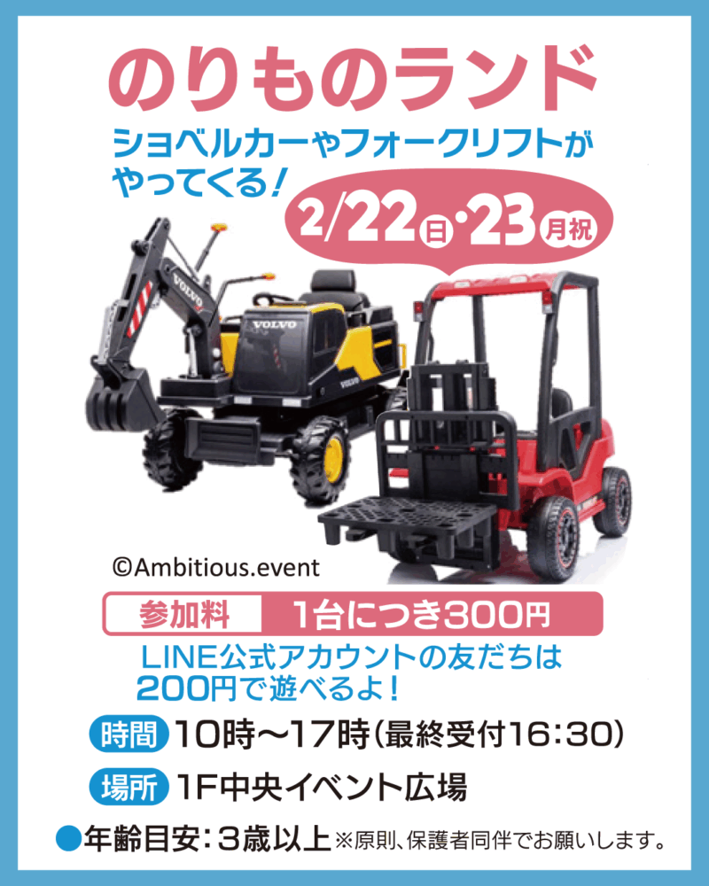• 2/22(日)・23(月祝)開催!のりものランド♪