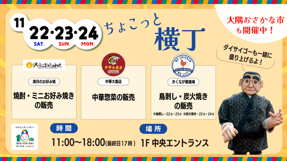 • 11/22(土)23(日)24(月振休)「ちょこっと横丁」開催❗️